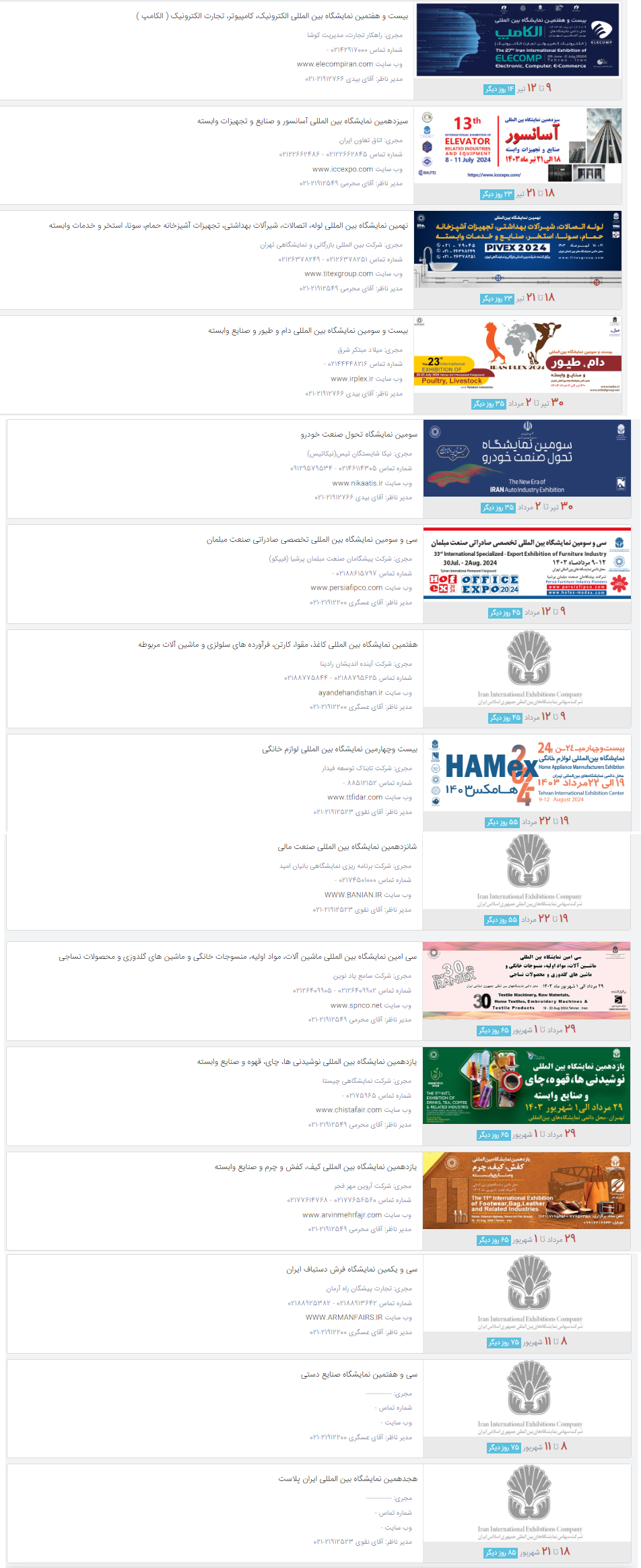 د نړیوالو نندارتونونو مهال ویش د ۱۴۰۳ کال د اوړی په موسم، د ایران اسلامی جمهوریت کې