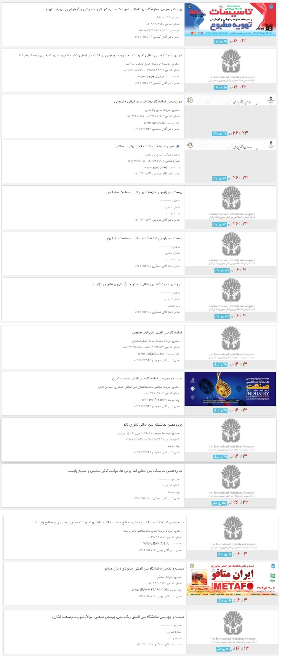 د نړیوالو نندارتونونو مهال ویش د ۱۴۰۳ کال د منیی په موسم، د ایران اسلامی جمهوریت کې