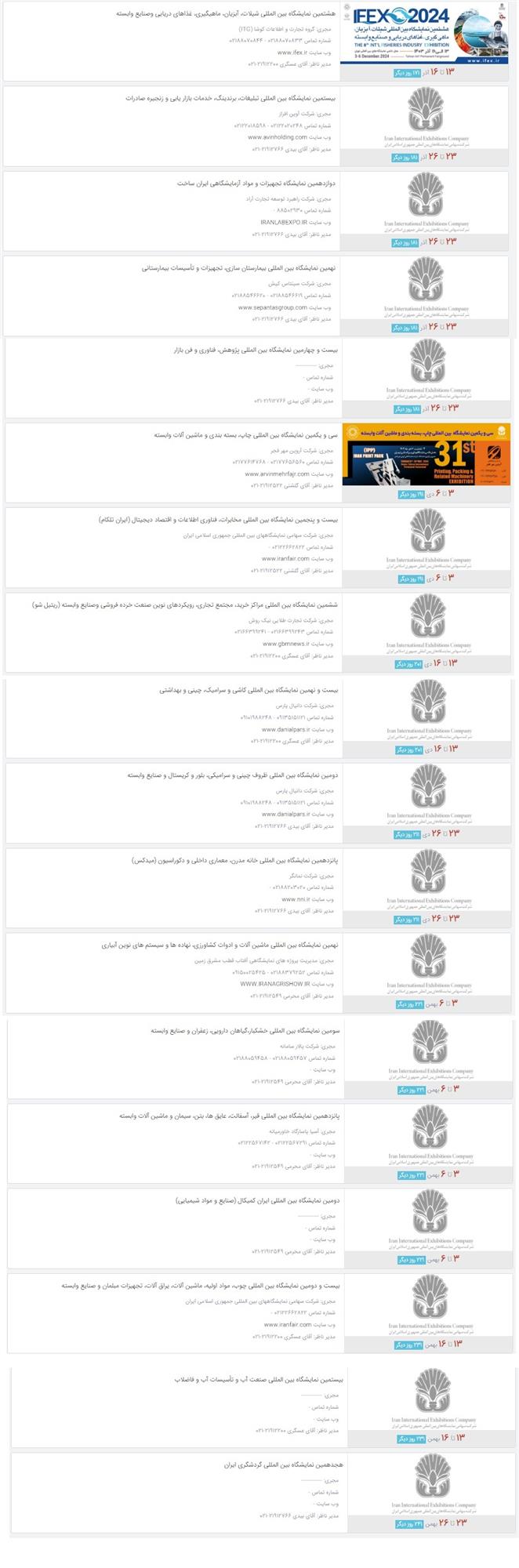 تقویم برگزاری نمایشگاههای بینالمللی در جمهوری اسلامی ایران تا پایان زمستان سال 1403