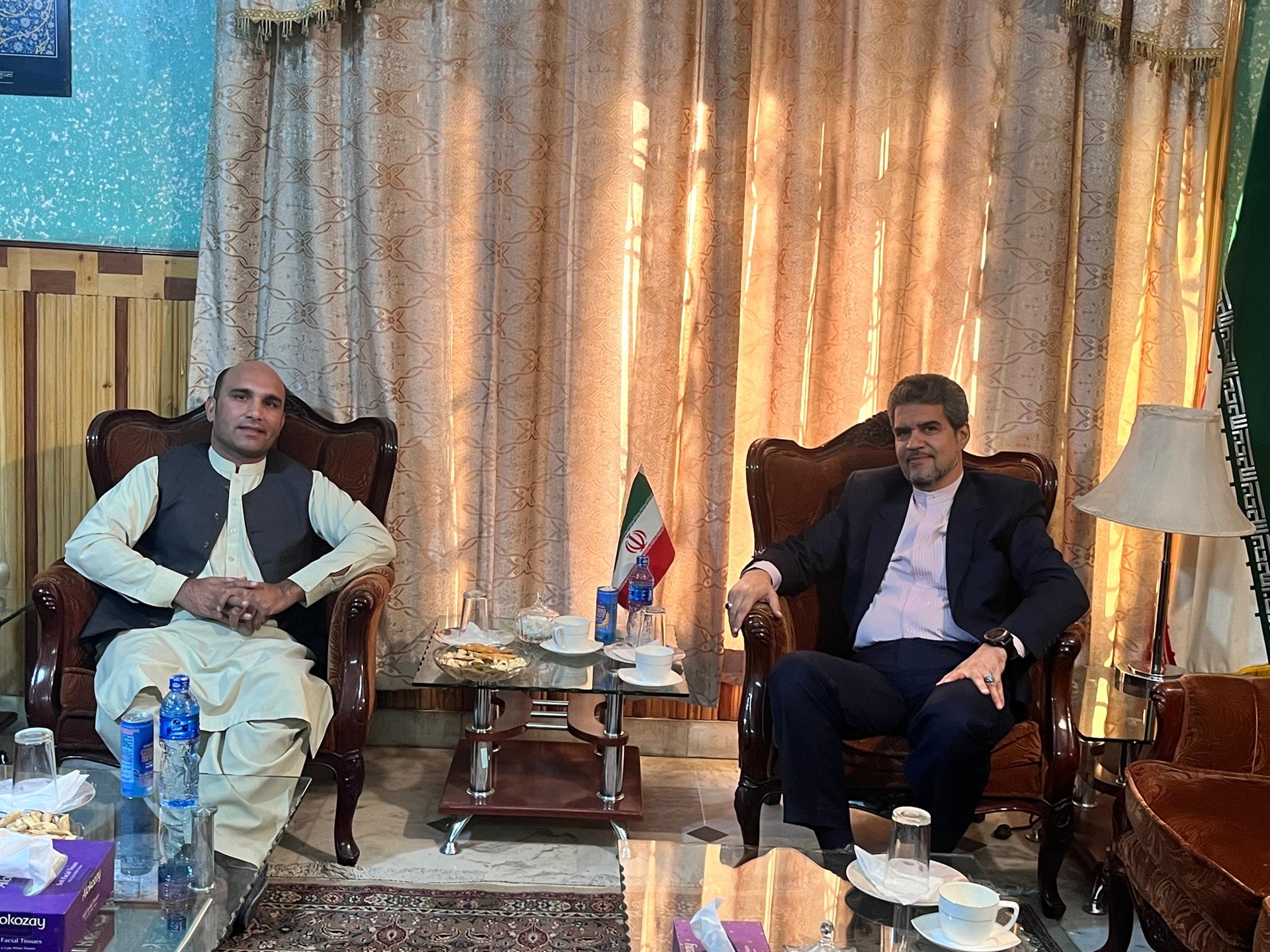 آقای مجید رضا پناه با میزبانی از آقای سلطان ناصری، رئیس سازمان صلیب سرخ در منطقه مشرقی، پیرامون موضوعات مورد علاقه مشترک، گفتگو تبادل نظر نمودند.